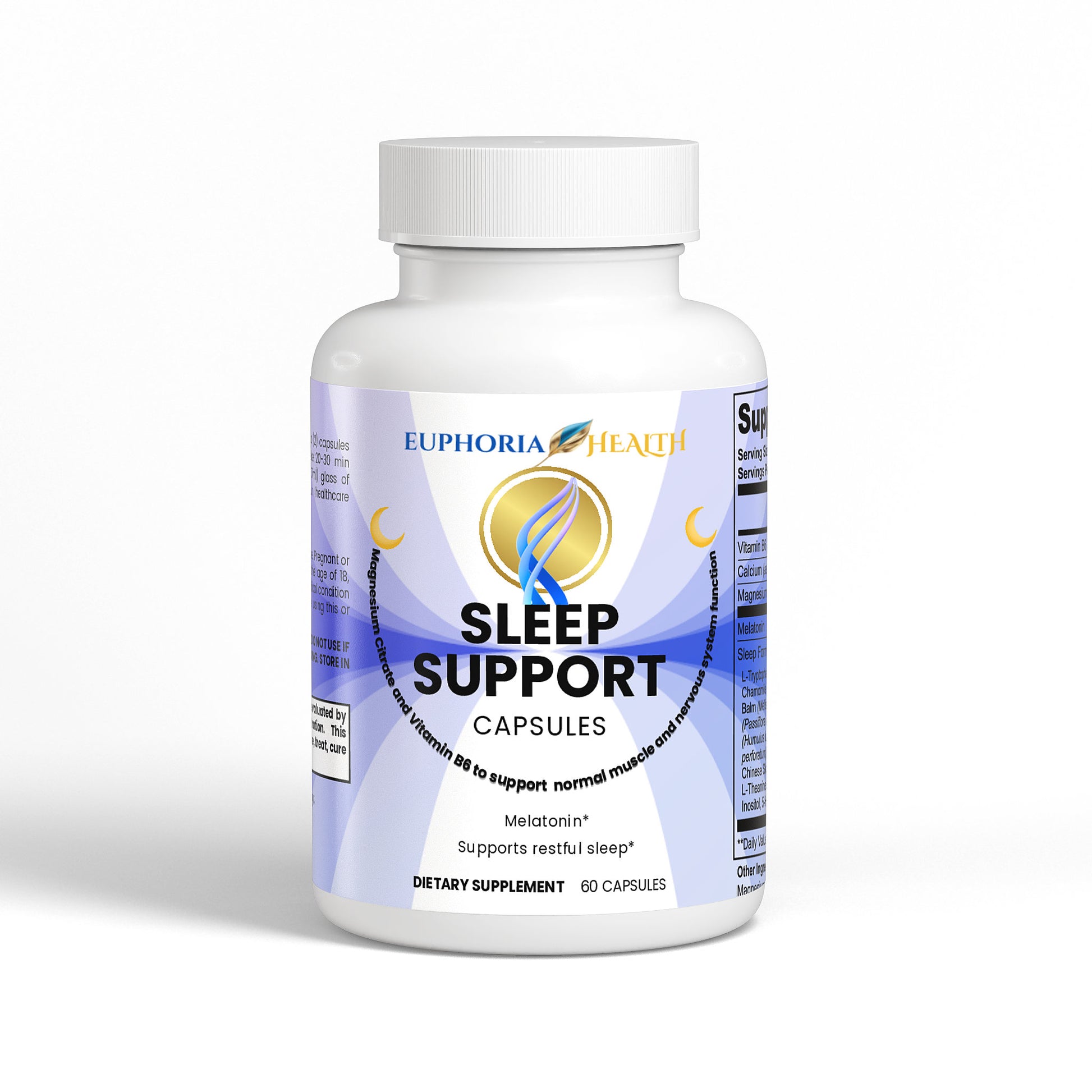 Our Sleep Support supplement is designed to help you unwind and ease into a restful night. With magnesium citrate and vitamin B6 to support normal muscle and nervous system function, and melatonin to encourage your natural sleep cycle, this formula provides a balanced approach to relaxation.*